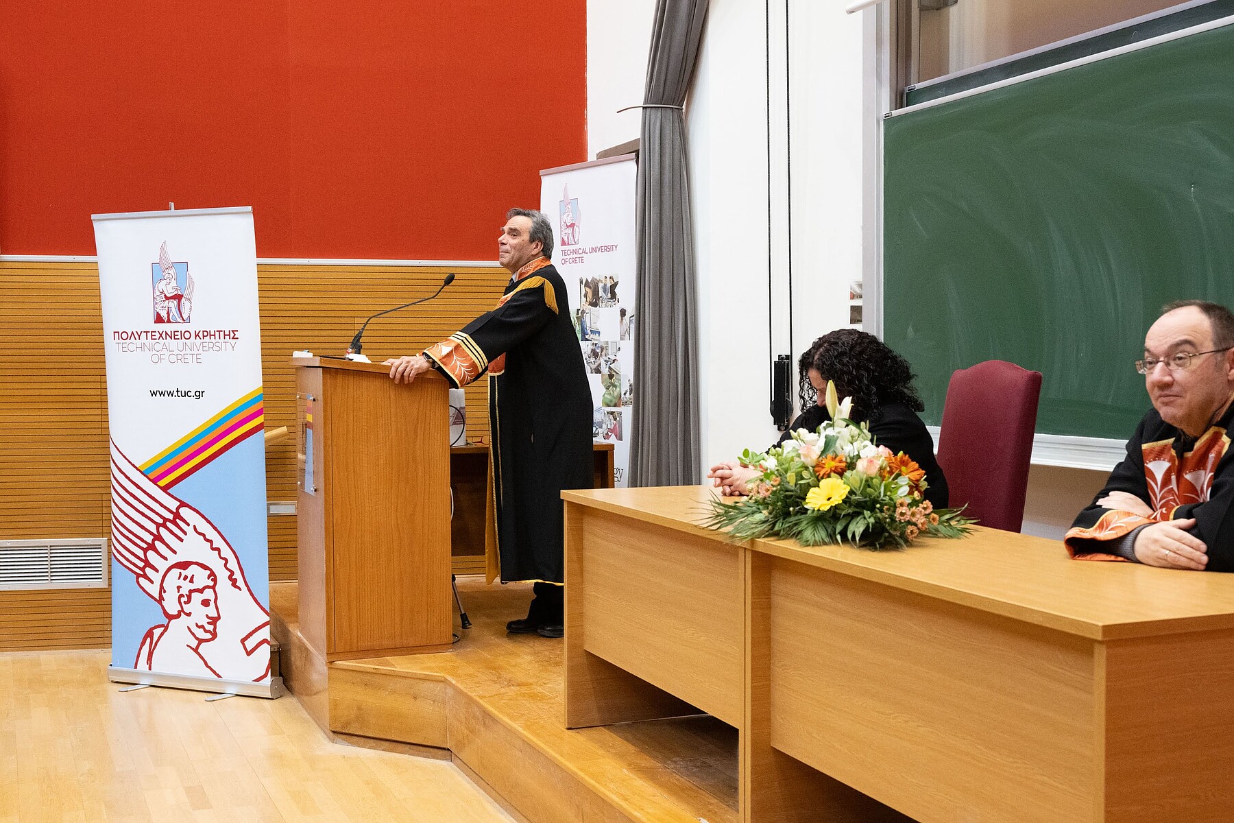 Κατά την έναρξη της Τελετής, απηύθυνε χαιρετισμό ο Πρύτανης του Πολυτεχνείου Κρήτης Καθηγητής Μιχαήλ Ζερβάκης.