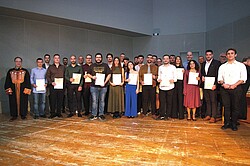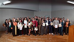 Στην Τελετή, η οποία πραγματοποιήθηκε σε δύο μέρη, πλήθος κόσμου κατέκλυσε την αίθουσα για να ευχηθούν στους βραβευθέντες και τους αποφοίτους και να μοιραστούν μαζί τους τη χαρά και τη συγκίνηση για τη σημαντική αυτή στιγμή.