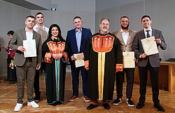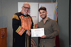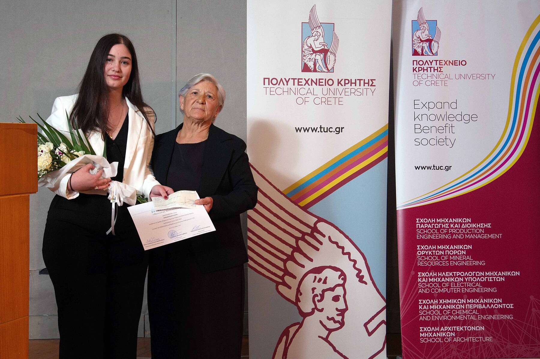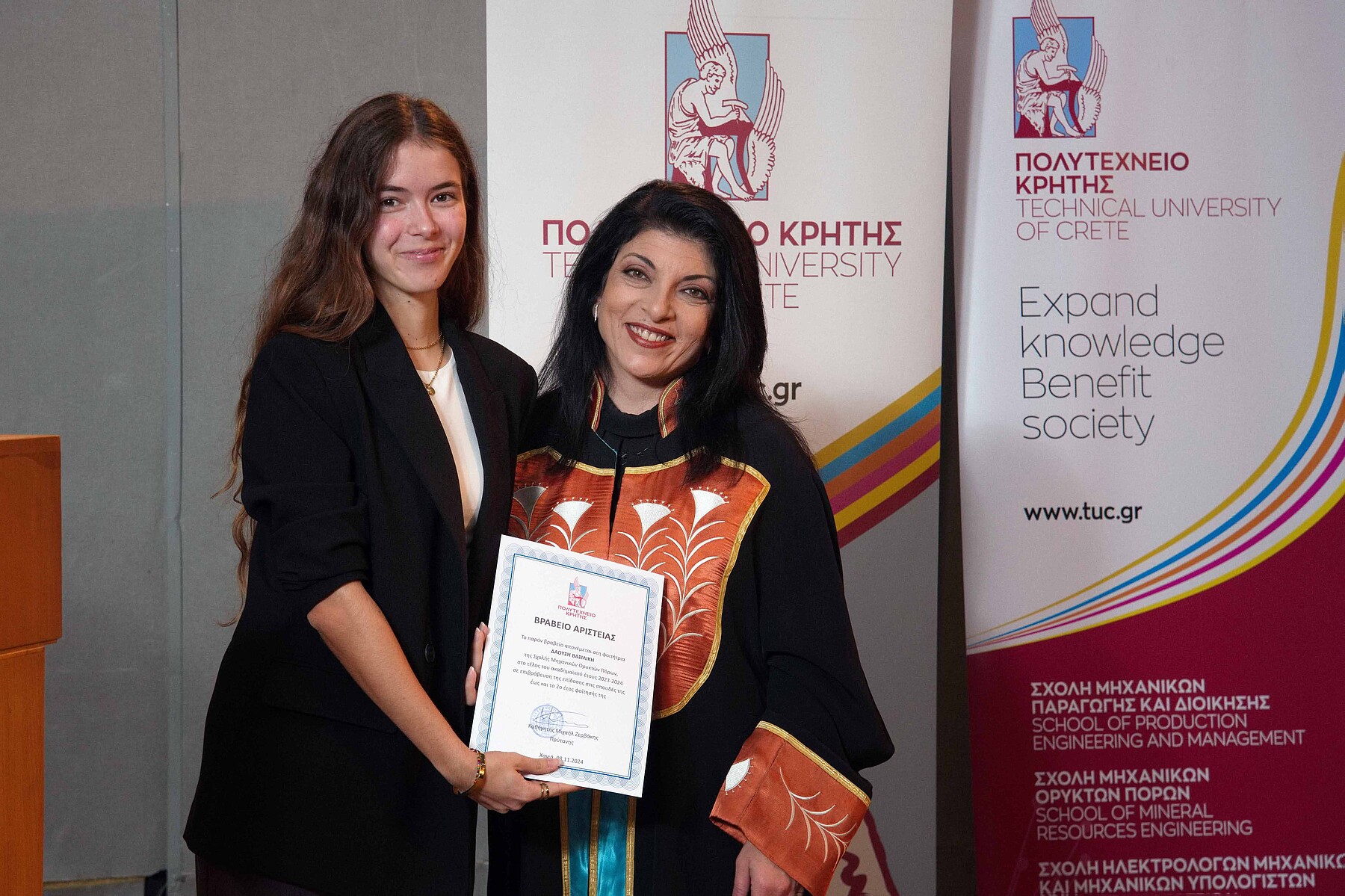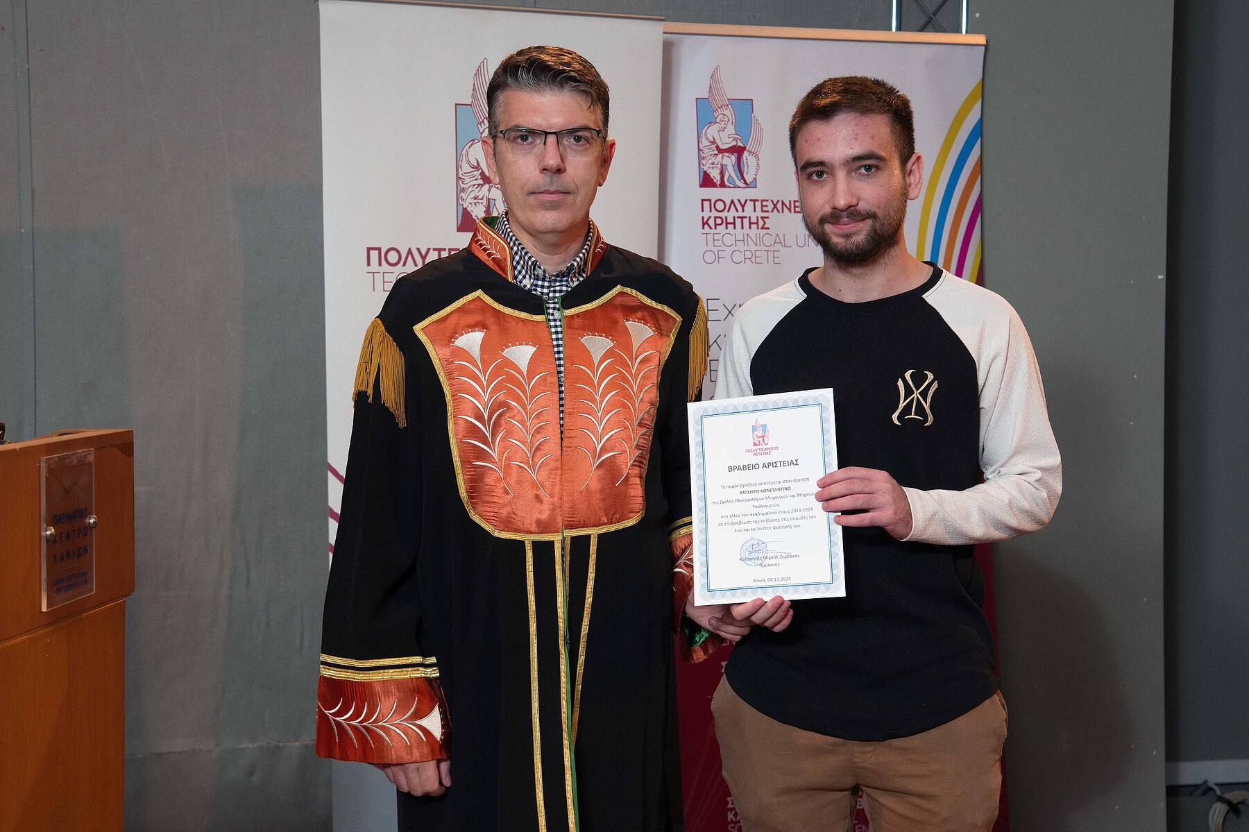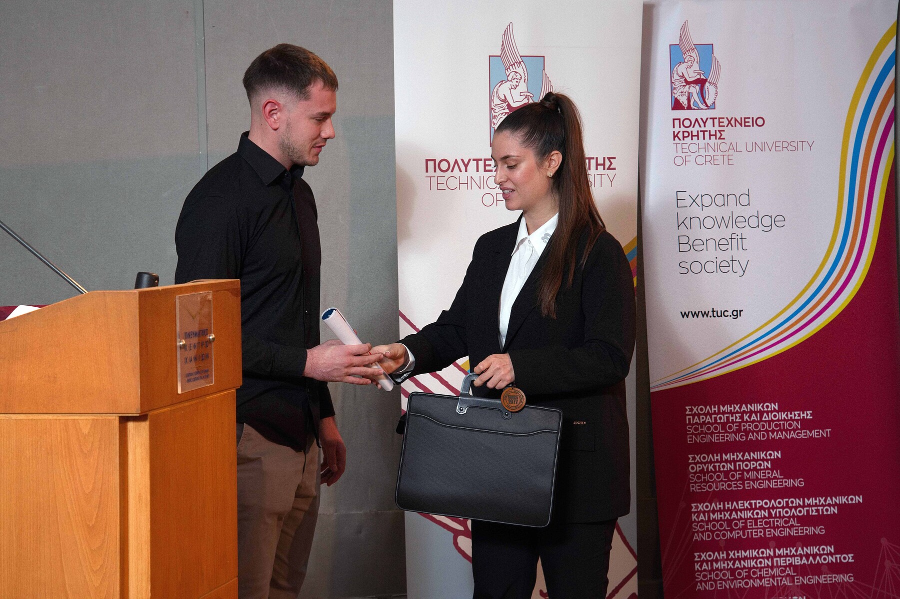 Στο πλαίσιο της τελετής πραγματοποιήθηκαν οι απονομές Επαίνων, Υποτροφιών και Βραβείων σε 43 φοιτητές και αποφοίτους του Πολυτεχνείου Κρήτης: