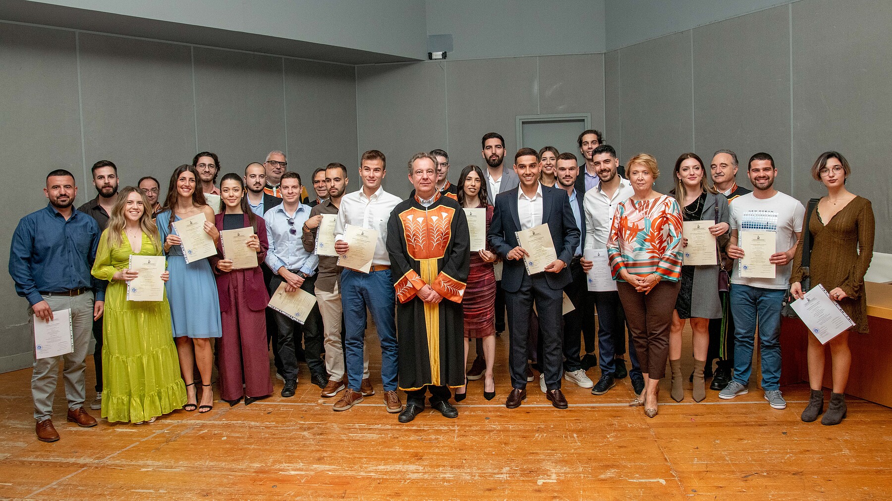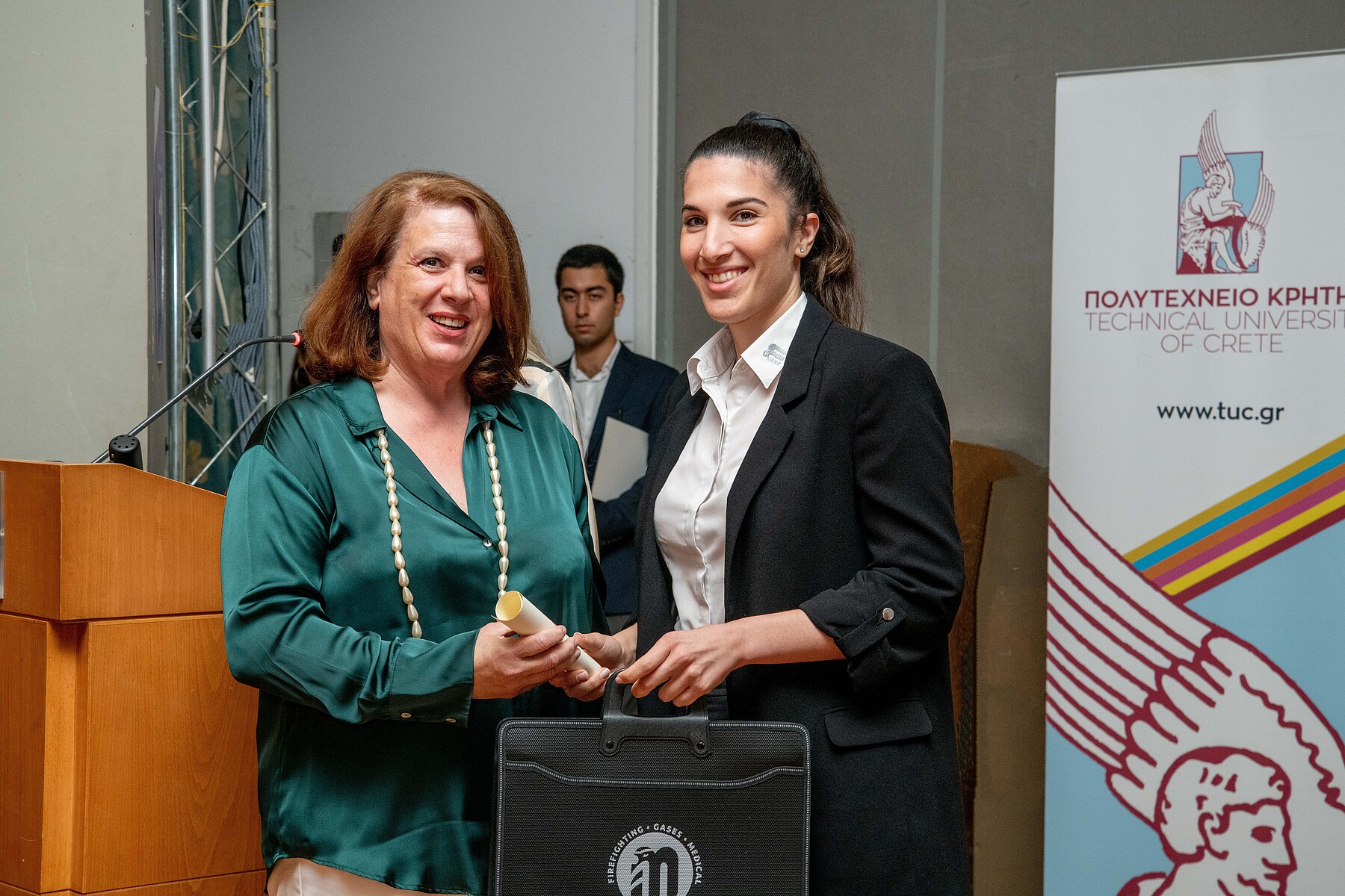 Στο πλαίσιο της τελετής πραγματοποιήθηκαν οι απονομές Επαίνων, Υποτροφιών και Βραβείων σε 47 φοιτητές και αποφοίτους του Πολυτεχνείου Κρήτης:
