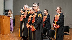 Η Τελετή Απονομής Διπλωμάτων Μηχανικού του Πολυτεχνείου Κρήτης ολοκληρώθηκε με την ομαδική φωτογράφιση των αποφοίτων ανά Σχολή, μαζί με τον Κοσμήτορα, την Γραμματέα και την Πρυτανεία του Ιδρύματος.