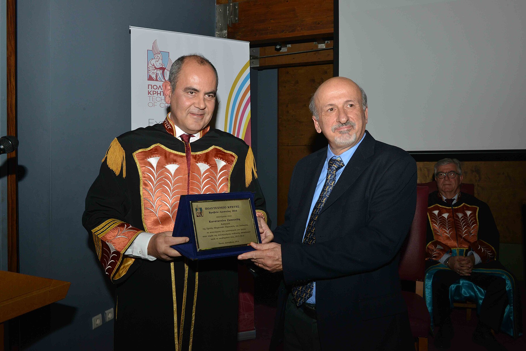 Το Βραβείο Αριστείας 2016 απονεμήθηκε στον Καθηγητή της Σχολής Μηχανικών Παραγωγής & Διοίκησης κ. Κωνσταντίνο Ζοπουνίδη σε αναγνώριση του ερευνητικού του έργου στον τομέα της πολυκριτήριας ανάλυσης αποφάσεων κατά το ακαδημαϊκό έτος 2015-2016. Το Βραβείο Αριστείας απονεμήθηκε για τέταρτη συνεχή χρονιά σε Καθηγητή του Ιδρύματος για τα ερευνητικά επιτεύγματα του. Ο τιμώμενος με το Βραβείο Αριστείας 2016, Καθηγητής κ. Κωνσταντίνος Ζοπουνίδης, εκφώνησε την κεντρική ομιλία κατά την Τελετή Απονομής. Ο Κωνσταντίνος Ζοπουνίδης είναι Καθηγητής και Διευθυντής του Εργαστηρίου Συστημάτων Χρηματοοικονομικής Διοίκησης της Σχολής Μηχανικών Παραγωγής και Διοίκησης του Πολυτεχνείου Κρήτης. Είναι Μέλος δύο Ακαδημιών της Ισπανίας και Διακεκριμένος Καθηγητής ΄Έρευνας της Audencia Business School. Στα πλαίσια της ερευνητικής του δραστηριότητας, του έχουν απονεμηθεί πολλές τιμητικές διακρίσεις.