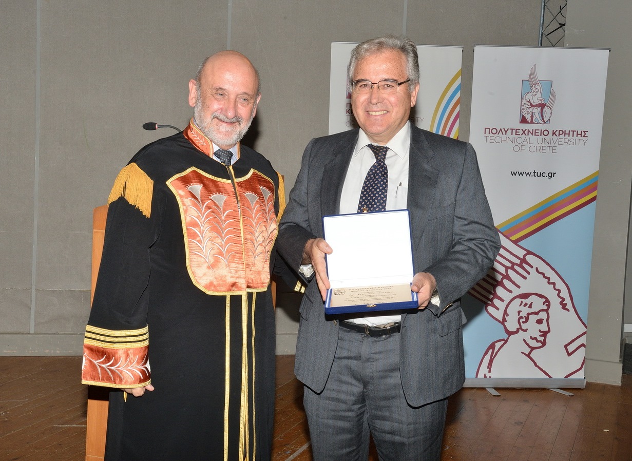 To Βραβείο Αριστείας 2014 απονεμήθηκε στον Καθηγητή της Σχολής Μηχανικών Παραγωγής και Διοίκησης κ. Μάρκο Παπαγεωργίου σε αναγνώριση του ερευνητικού του έργου στον τομέα Αυτόματου Ελέγχου, Βελτιστοποίησης και Εφαρμογών κατά το ακαδημαϊκό έτος 2013-2014. Η απονομή του Βραβείου έγινε από τον Πρόεδρο του Συμβουλίου του Πολυτεχνείου Κρήτης κ. Διονύσιο Τσιχριτζή την Παρασκευή 5 Δεκεμβρίου 2014 στο Πνευματικό Κέντρο Χανίων, στο πλαίσιο της Τελετής Απονομής Μεταπτυχιακών και Διδακτορικών Διπλωμάτων του Πολυτεχνείου Κρήτης. Ο κ. Μάρκος Παπαγεωργίου, ήταν ο κεντρικός ομιλητής της τελετής απονομής. Ο Μάρκος Παπαγεωργίου από το 1994, είναι καθηγητής στη Σχολή Μηχανικών Παραγωγής και Διοίκησης και Διευθυντής του Εργαστηρίου Δυναμικών Συστημάτων και Προσομοίωσης (το οποίο διευθύνει από το 1994). Του έχει απονεμηθεί ένα ERC Advanced Investigator Grant για το έργο TRAMAN21 (Traffic Management for the 21st Century) (2013-2017) από το Ευρωπαϊκό Συμβούλιο Έρευνας (ERC). Η ομιλία του κ. Μ. Παπαγεωργίου.