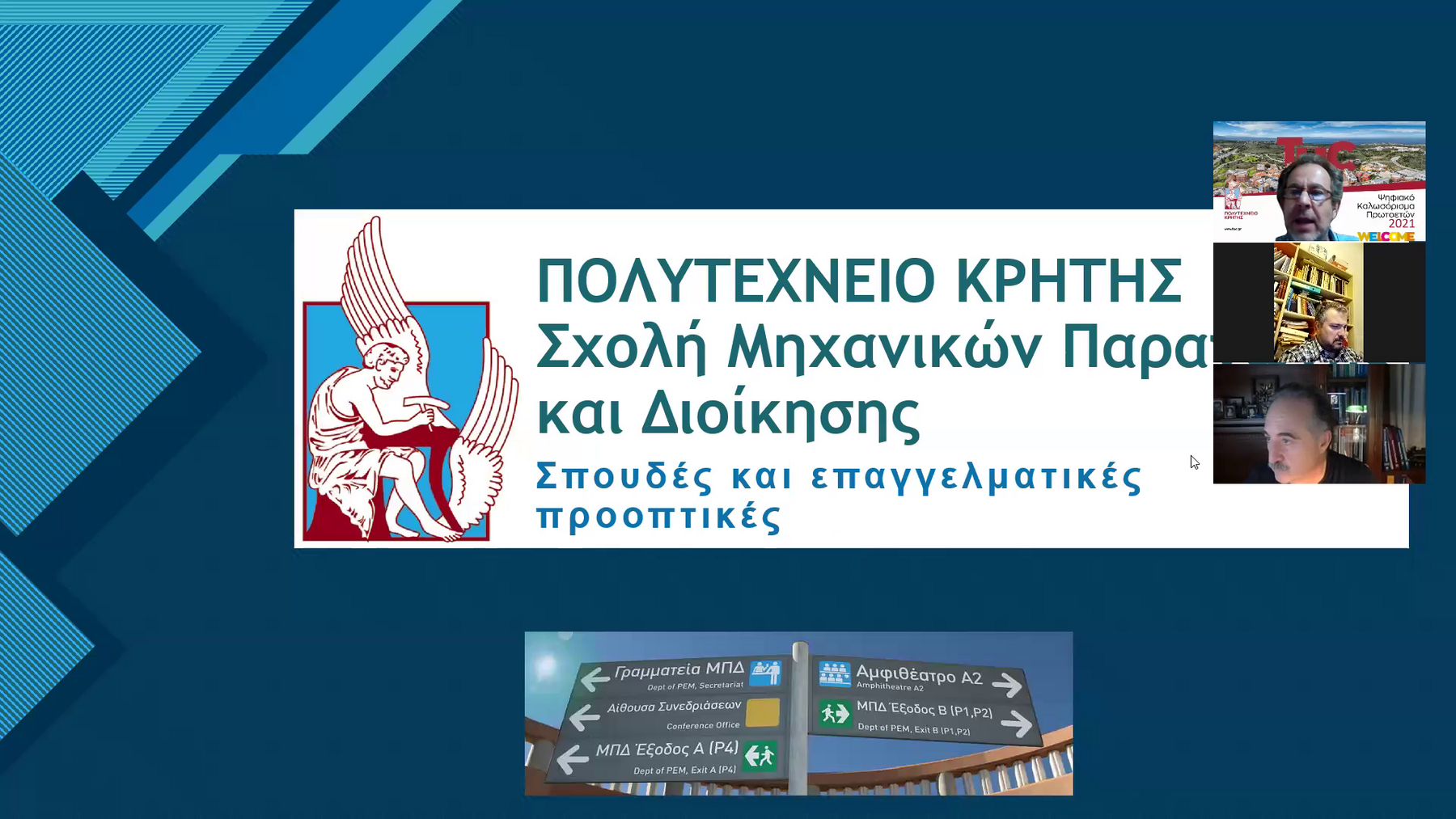 Στο δεύτερο μέρος, το οποίο πραγματοποιήθηκε διαδικτυακά στις 18:00 το απόγευμα, μέσω της ιδρυματικής υπηρεσίας τηλεδιάσκεψης zoom, οι πρωτοετείς μας φοιτητές είχαν την ευκαιρία να γνωρίσουν συνολικά το Πολυτεχνείο Κρήτης. Το δεύτερο μέρος της εκδήλωσης ξεκίνησε με την προβολή ενός σύντομου video για τις Σπουδές και την Έρευνα στο Πολυτεχνείο Κρήτης. Στη συνέχεια, η Πρυτανεία και οι πέντε Σχολές έδωσαν στους νέους φοιτητές του Ιδρύματος χρήσιμες πληροφορίες για τις σπουδές, την έρευνα, τις υπηρεσίες και τη φοιτητική ζωή στο Πολυτεχνείο Κρήτης.