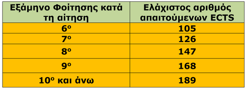 Να έχουν συμπληρώσει τουλάχιστον το 70% των ECTS των μαθημάτων έως το εξάμηνο σπουδών τους.