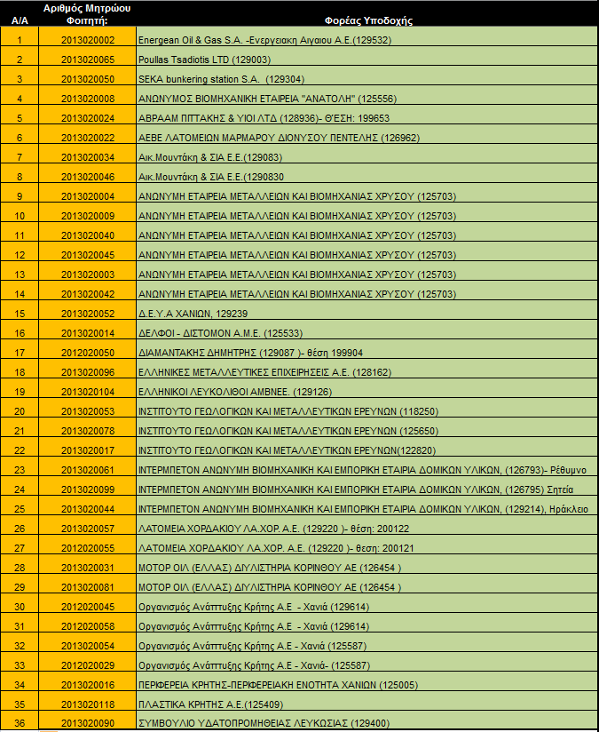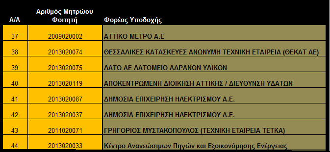 Αντιστοιχήσεις φοιτητών σε φορείς υποδοχής -3ος Κύκλος - 2-6-2017