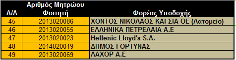 Αντιστοιχήσεις φοιτητών σε φορείς υποδοχής -4ος Κύκλος - 29-8-2017