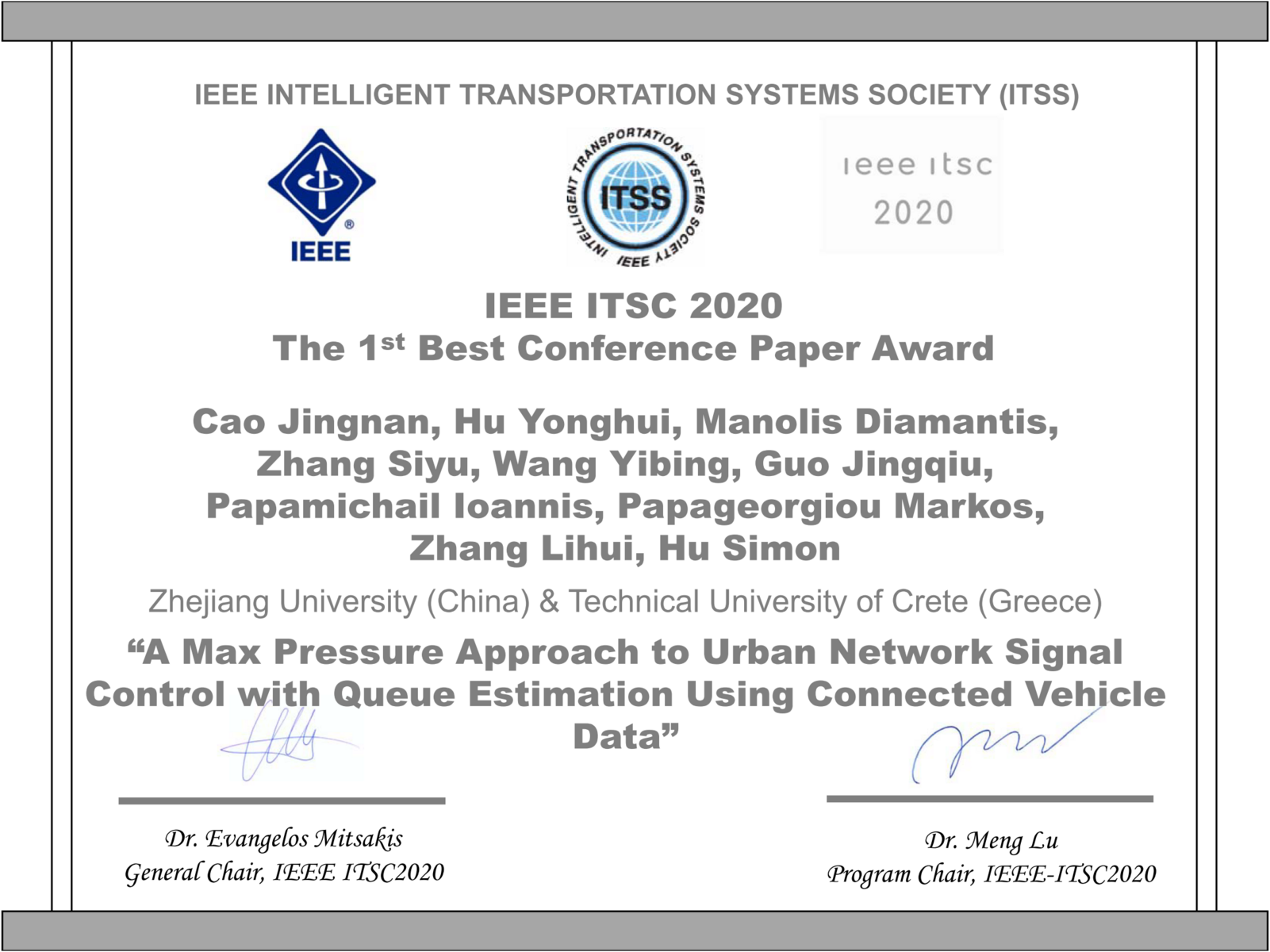 The article is the result of a DSSL collaboration with the Institute of Intelligent Transportation Systems, Zhejiang University and is about the use of connected vehicle data for efficient urban traffic control.
