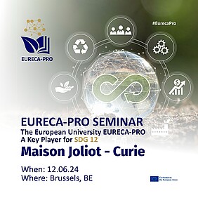 EURECA-PRO is pleased to invite you to the Seminar "The European University EURECA-PRO, a key player for SDG 12" that presents a unique opportunity to bolster interdisciplinary dialogue between EURECA-PRO stakeholders and representatives from European and international institutions, as well as the structuring of ecosystems in the fields of research, innovation, and education. Key topics to be discussed include: