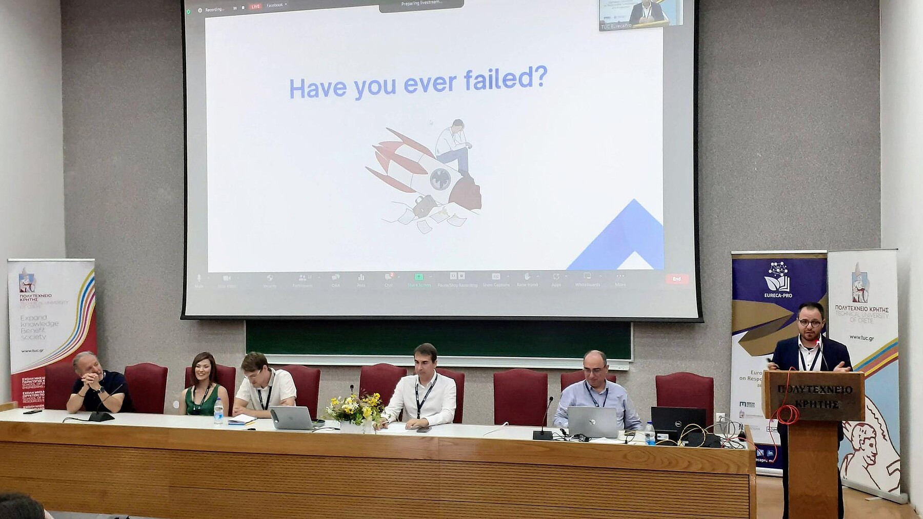 The Technical University of Crete (TUC), as a proud member of the European University on Responsible Consumption and Production (EURECA-PRO), organized InnoForum 2023 "Unlocking the Potential of Failure in Innovation" at “Manousos Manousakis" Amphitheatre on TUC Campus, on Tuesday June 6th, 2023. The focus of the event was to share valuable “know-how” in the area of Innovation and Entrepreneurship (I&E), demonstrate how failure in innovation can lead to entrepreneurial success, and provide a stage to exchange ideas and experiences among established and aspiring, novice entrepreneurs within the EURECA-PRO as well as the local community.