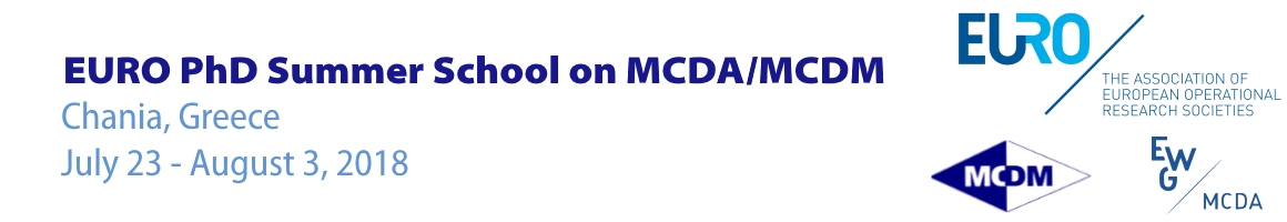 The Summer School is a joint event of the Association of European Operational Research Societies (EURO), the International Society on MCDM, and the EURO Working Group on Multicriteria Decision Aiding, that aims to promote the ideas, philosophy and practices of MCDA/M to doctoral students. The School provides participants with a unique opportunity to get a comprehensive and in-depth view of the state-of-the-art in MCDA/M approaches and methodologies, their applications in various areas, the relevant software decision support tools, and the interconnections of MCDA/M with other closely related theoretical and applied disciplines from OR/MS, computer science, engineering, and social sciences. Thus, the Summer School provides a detailed coverage of all established and emerging areas in MCDA/M and further emphasizes the interdisciplinary character of the field, which is fundamental for addressing the challenges that complex decision problems pose, in an effective manner.
