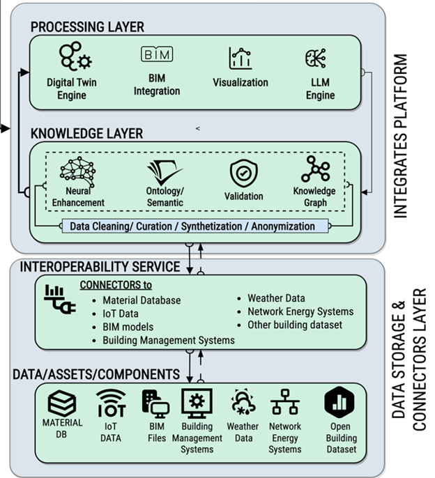 By integrating these technologies, INTEGRATES aims to optimise energy efficiency, reduce the carbon footprint, and promote a circular approach to the management of the built environment, with an emphasis on material reuse and sustainable resource utilisation throughout the life cycle of buildings.