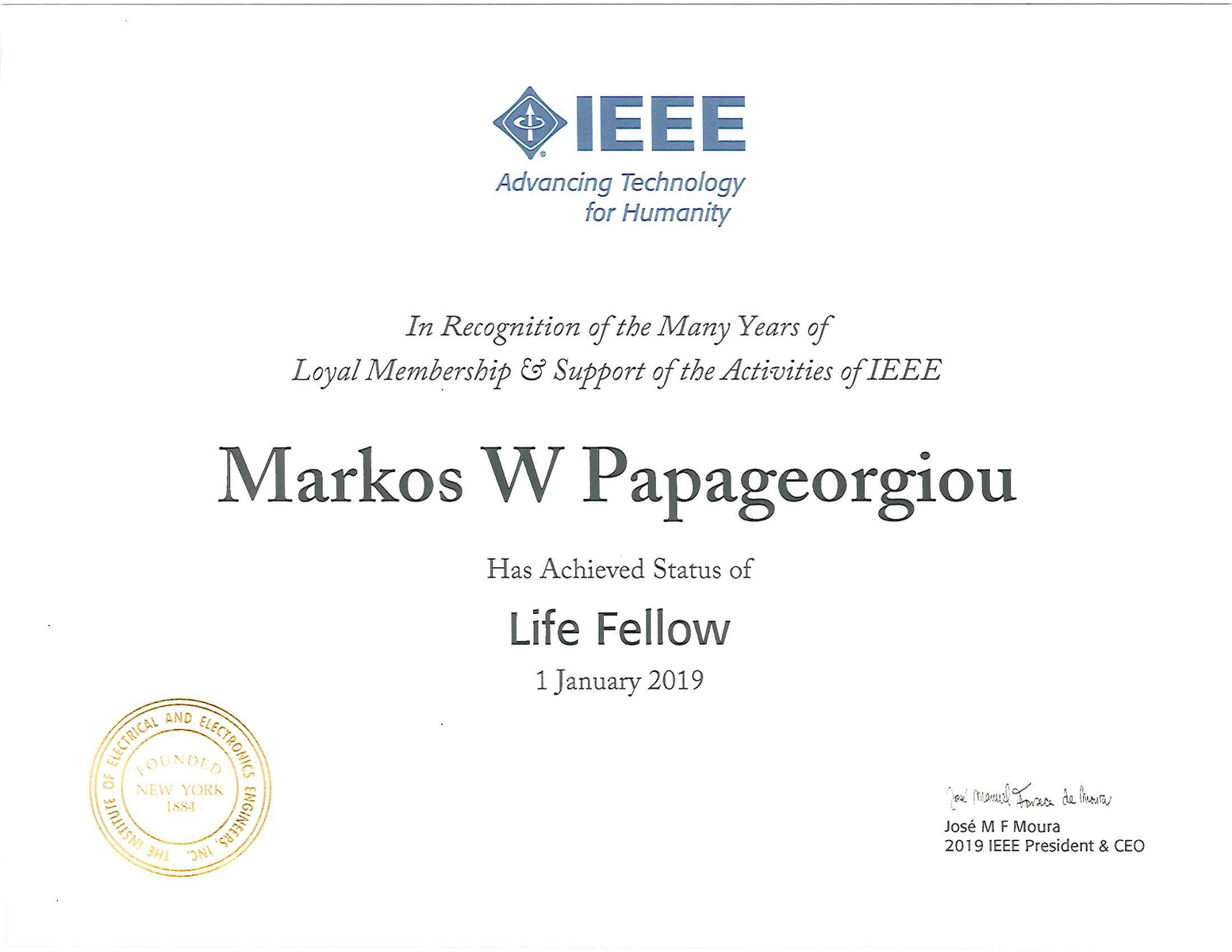 - Prof. Markos Papageorgiou was selected to become an IEEE Life Fellow from January 1, 2019.