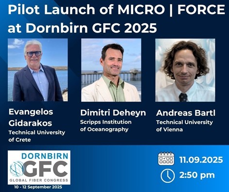 Professor Emeritus Evangelos Gidarakos of the School of Chemical and Environmental Engineering at the Technical University of Crete, in collaboration with Prof. Dimitri Deheyn from the Scripps Institution of Oceanography in San Diego and Prof. Andreas Bartl from TU Vienna, organized the MICRO/FORCE Workshop, which took place within the framework of the 64th Dornbirn-GFC International Conference, held from September 10 to 12 in Dornbirn, Austria.