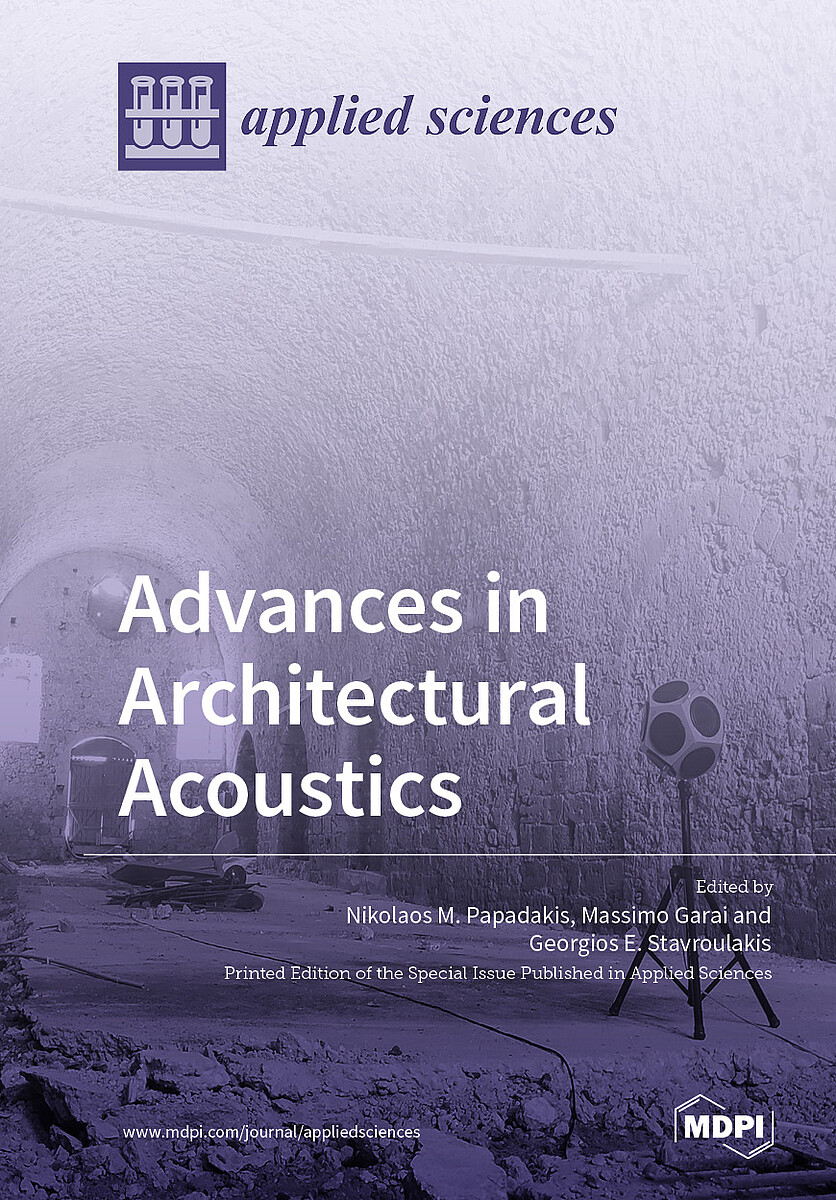 An new edited volume (MDPI, 358 pages, 2022), titled "Advances in Architectural Acoustics", has been published recently by MDPI Books. The book has been edited by Dr. Nikolaos Papadakis and Prof. Georgios Stavroulakis of the School of Production Engineering and Management, both members of the Computational Mechanics and Optimization Laboratory at the Technical University of Crete, in collaboration with Prof. Massimo Garai from the University of Bologna. The book contains 18 articles from various areas of architectural acoustics, written from researchers and designers.