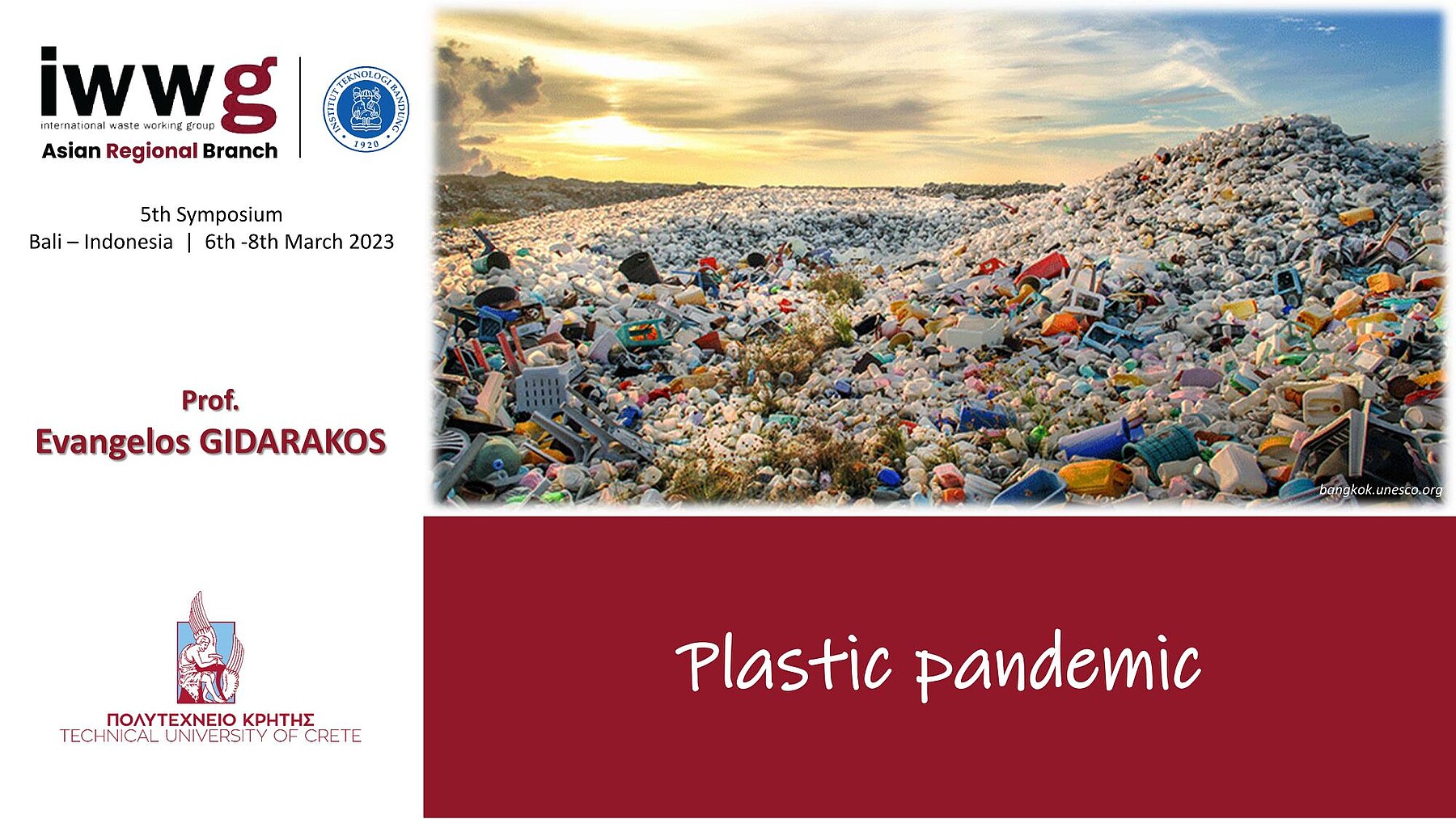 Evangelos Gidarakos, Professor Emeritus of the School of Chemical and Environmental Engineering at the Technical University of Crete and member of the Board of Directors of the International Organization International Waste Working Group (IWWG), participated as a keynote speaker in the 5th International Conference of the Local Branch of the IWWG in Asia (IWWG-ARB 2023), which was held from 3 to 8 March 2023 in Bali, Indonesia.
