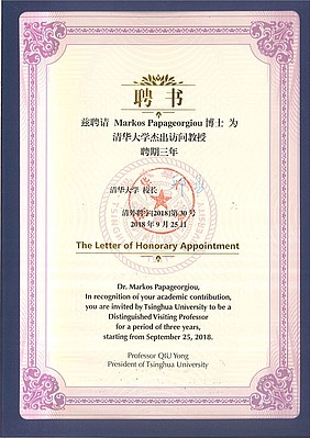 On September 27, 2018, Professor Markos Papageorgiou was awarded the title of Tsinghua Distinguished Visiting Professor, for a period of three years (2018-2021) in recognition of his academic contribution. The appointment ceremony was held in the Department of Civil Engineering at Tsinghua University. The ceremony started with a welcome speech by Jianping WU, Director of Tsinghua-Cambridge-MIT Future Transport Centre. He briefly introduced Professor Markos Papageorgiou and his brilliant achievements. On behalf of the School of Civil Engineering, Professor Keifei LI, Vice Dean of the School, awarded Markos Papageorgiou the certificate of Distinguished Visiting Professor. Over 30 university staff and students witnessed the ceremony. Following the ceremony, Professor Markos Papageorgiou delivered a talk entitled “Traffic Management for the 21st Century”.