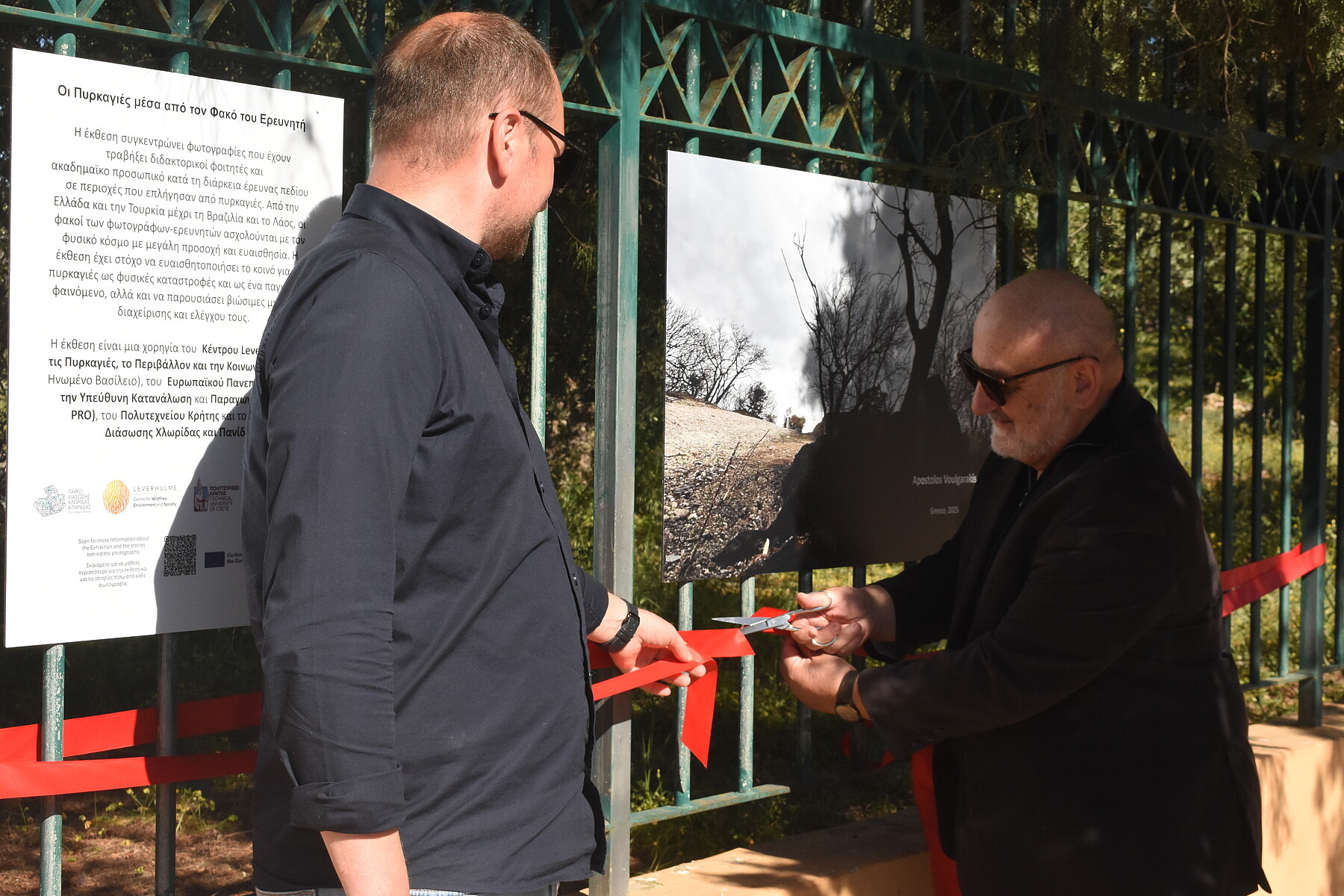 The opening of the photographic exhibition entitled "Wildfires Through the Researcher’s Lens" highlighted the global dimension of the theme and presented sustainable methods of management and control of forest fires. The eight photographs that adorn the entrance of the Park have been taken by doctoral students and academic staff during field research in areas affected by fires. From Turkey and Greece to Brazil and Laos, the investigative lenses of the photographers-researchers engage with the natural world with great care, empathy and sensitivity. The collection raises awareness not only about wildfires as natural catastrophes on a global scale, but also presents sustainable methods of managing and controlling them. The exhibition was made possible through the collaboration of the Flora and Fauna Preservation Park and the Technical University of Crete with the EURECA-PRO TUC team and the Leverhulme Centre for Wildfires, Environment and Society (London, UK). The opening of the exhibition was foreworded with two short presentations by Dr. Evan Diamadopoulos, Professor Emeritus of the School of Chemical and Environmental Engineering and Scientific Coordinator of EURECA-PRO TUC, as well as Dr. Apostolos Voulgarakis, Professor of the School of Chemical and Environmental Engineering and Deputy Director of the Leverhulme Center.
