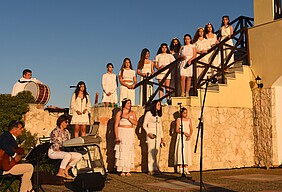 The Festival closed with the musical performance of the Environmental Team of the Public Junior High School of Kounoupidiana, where the students, through lyrics, melodies, and sounds, unfolded for the last time the thread of their teenage wandering in the Park and moved the audience. The music instruction of the group was coordinated by Isavella Stavridou (Music teacher) and the selection of the pieces was co-curated by Mrs. Stavridou together with Mrs. Theochari. The sophisticated program included poems by Odysseas Elytis set to music, such as "Kato stis Margaritas to Alonaki - Down by Margarita’s Threshing Floor" with music by Yiannis Markopoulos or "To Magissaki - The Little Witch" by Nena Venetsanou, but also traditional songs from Greece, such as "Apano stin Triantafylia - Upon the Rose Tree ", from England, such as "Bushes and Briars", and from the island of the Hebrides in Scotland, such as "The People Who Have Gardens", as well as emblematic compositions by Manos Hadjidakis, such as "Ta paidia Kato Ston Kampo - The Children Down the Plains" or "O Efialtis Tis Persefonis - The Nightmare of Persephone" with lyrics by Nikos Gatsos, with which the performance ended impressively in colors, as the advent of the blue hour began.