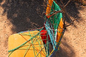 The threads of this "Little Green Sea" were spread everywhere in the Park. The route from the entrance to the museum was framed by artistic interventions by the students with sculptural chairs made of leaves, branches and other raw materials that the students collected during the field research they did over the past several months in the Park. Personal items, clothing and other objects that the students used during their research were placed at various points within the route, thus creating a thread that thematically connected the entrance and outpost of the Park with the threshing floor and the museum, as well as the Park's greenhouse. The works of the students reconstructed the Park with great detail, empathy and artistic excellence, highlighting its seasonality and biodiversity, thus capturing its multidimensional and ephemeral beauties.