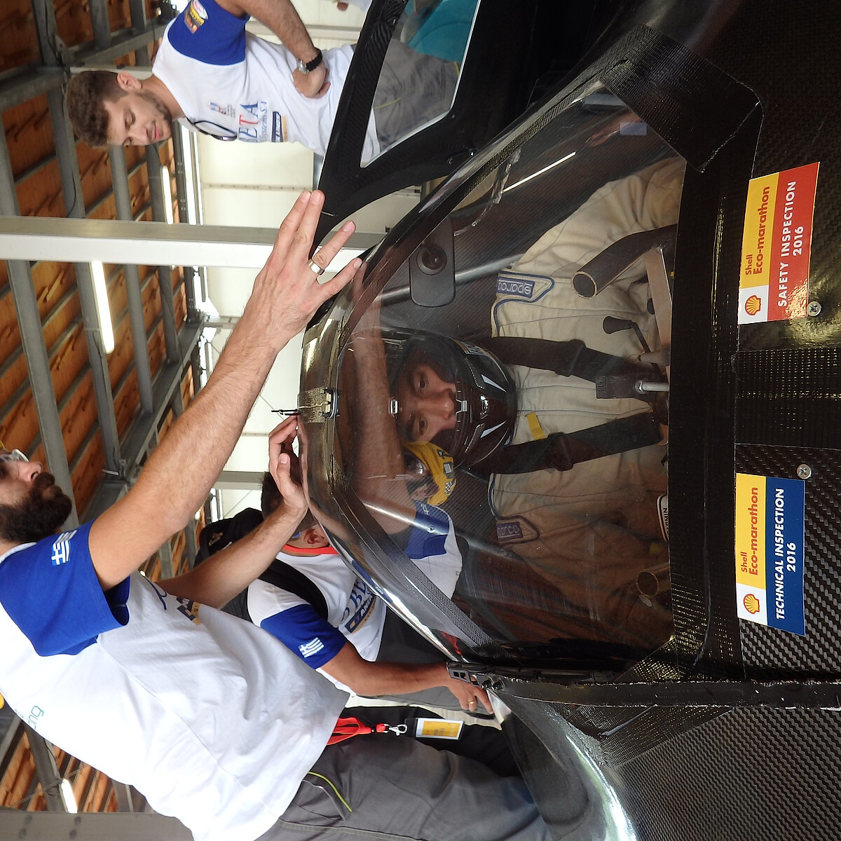 The team presented this year an advanced vehicle, named Spyros Louis - in order to honour the great Greek Olympic Marathon winner - aiming to excel in a brand new and extremely demanding route. Significant improvements were made in the vehicle's chassis, which has been re-designed in order to achieve better handling and safety in race conditions. Additionally, new energy management modules targeting fuel consumption were installed together with driver's safety devices (one of the main targets of this year), new aerodynamic components, the powertrain has been massively improved and advanced car and driver status telemetry systems, with live data transferring, have been integrated to the car.